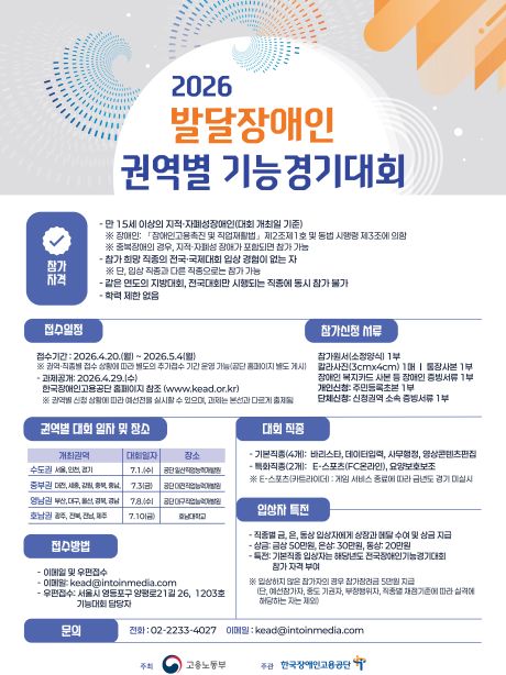 2026년 발달장애인기능경기대회 참가자 모집… 5월 4일까지 원서 접수