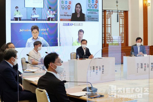 문재인 대통령이 8일 청와대에서 열린 '사회서비스원 돌봄종사자 영상 간담회'에