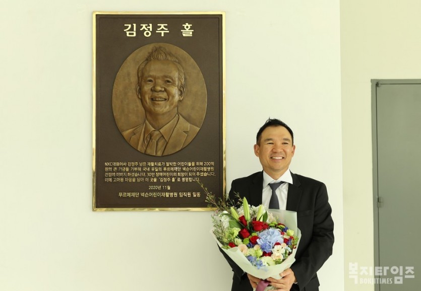 고 김정주 이사는 지난 2016년 개원한 푸르메재단 넥슨어린이재활병원 건립에 200억원을 기부해 국내 어린이재활치료의 초석을 다졌다.